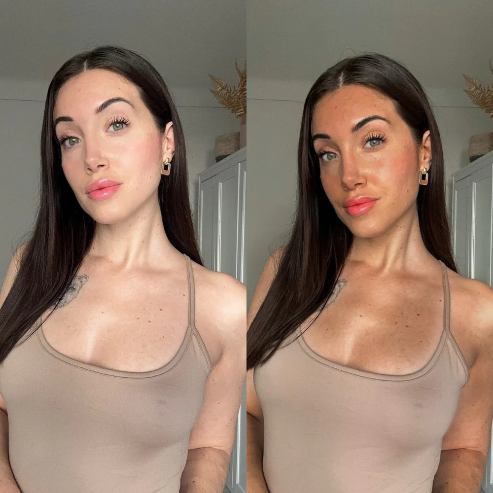 Formule propre, sans autobronzant, sans UV. Pas de danger pour la peau : seulement des actifs bons pour vous.